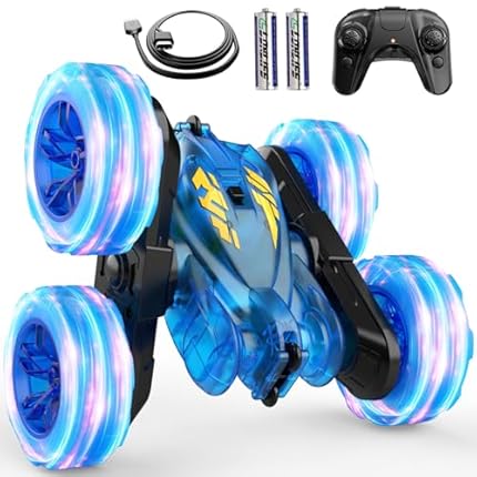 Remote Control Car,Stunt RC Cars For Kids with Colorful Light,Fast USB-C Charging,Double-Sided 360° Rotating Rechargeable 4WD RC Truck Car Toys for Ages 5-7 Gift for Boys Girls Ages 8-12(Blue)