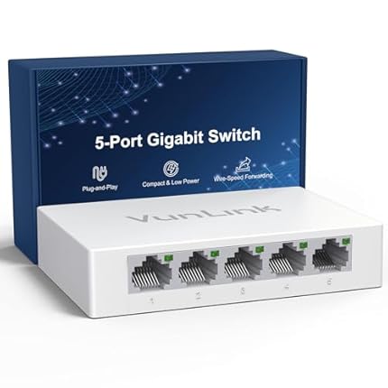 5 Port Gigabit Ethernet Switch – VunLink Unmanaged Network Switch Hub, Desktop Ethernet Splitter, Fanless & Energy Efficient, High-Speed Connection for Home, Office, NAS, Gaming