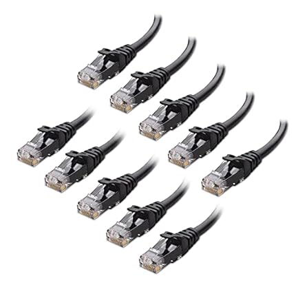 Cable Matters 10Gbps 10-Pack Snagless Cat 6 Ethernet Cable – 10ft, Cat 6 Cable, Cat6 Cord, Ethernet Cord, Black