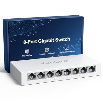 8 Port Gigabit Ethernet Switch – VunLink Unmanaged Network Switch Hub, Desktop Ethernet Splitter, Fanless & Energy Efficient, Plug-and-Play, High-Speed Connection for Home, Office, NAS, Gaming