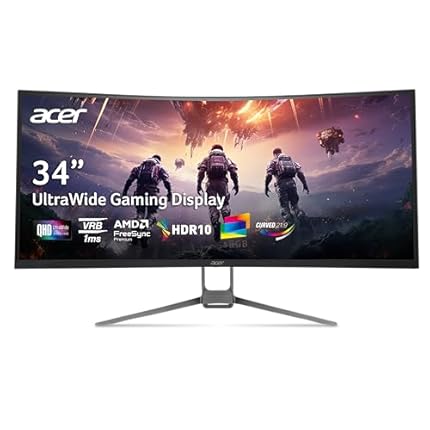acer Nitro 34 Inch 1000R 21:9 Curved Zero-Frame QHD 3440 x 1440 Gaming Monitor | AMD FreeSync Premium | Up to 120Hz Refresh | 1ms VRB | Two Display Port 1.2 & Two HDMI 2.0 Ports | EDA343CUR J0bmiippx