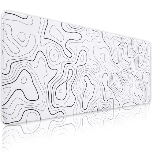 • White Mouse Pad, 31.5" x 11.8" Topographic Mouse Pad for Desktop, Large Gaming Mousepad with Stitched Edges, XL Long Mousepad Big Desk Mat with Rubber Base for Office Gaming Home $9.99
