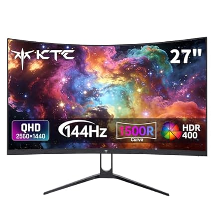 KTC H27S5C 27″ Curved Gaming Monitor, 1440P QHD 144Hz 120Hz Monitor, 1500R HVA Panel, HDR400, Adaptive Sync, 400nits, HDMI 2.0 x2, DP 1.4, VESA 100×100 PC Monitor