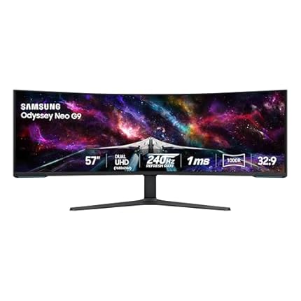 SAMSUNG 57″ Odyssey Neo G9 (G95NC) Series Dual 4K UHD 1000R Curved Gaming Monitor, 240Hz, 1ms with DisplayPort 2.1, Quantum Mini-LED, DisplayHDR 1000, AMD FreeSync Premium Pro, LS57CG952NNXZA