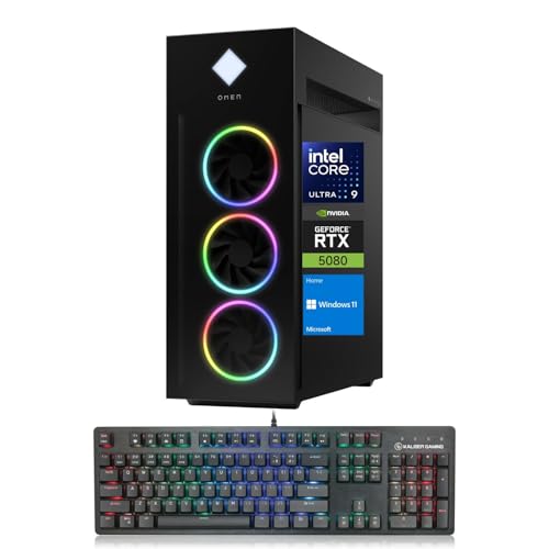 • HP Omen 45L RTX 5080 Gaming Desktop, Intel Ultra 9 285K, 64GB DDR5 RAM, 1TB SSD, RGB Light Studio, DP, RJ-45, Bundle with HVER Stealth Gaming Keyboard, Black, Windows 11 Home $3,599.00