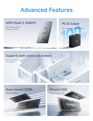 【Ryzen 5 7640HS Processor】: The UM760 Slim Mini PC comes with AMD Ryzen 5 7640H (6C/12T up to 5.0Ghz) processor. The faster performance can handle heavy computing tasks smoothly and better for multitasking. It widely used for light games, image editing, browsing, watching movies, programming etc.