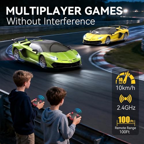【Children’s Favorite Gift】 Lamborghini RC cars for kids, great as a birthday Prizes, Raffle or Christmas Festival gift. The remote control car is the best toy for children to explore the field of automobile technology. Keep your children away from computers, mobile phones, and TV, improve their coordination and thinking skills.Not only can they play with peers but also with parents. Suitable for everyone who likes this remote control car.
