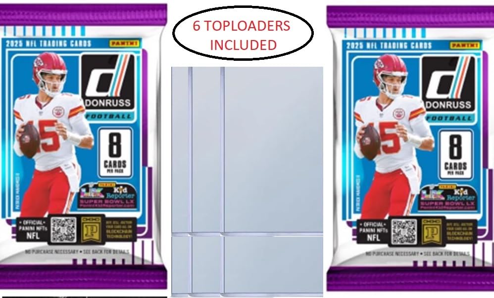 2025 Donruss Football Cards Blaster Pack 8 Trading Cards Per Pack (2 Pack) + 6 TOPLOADERS