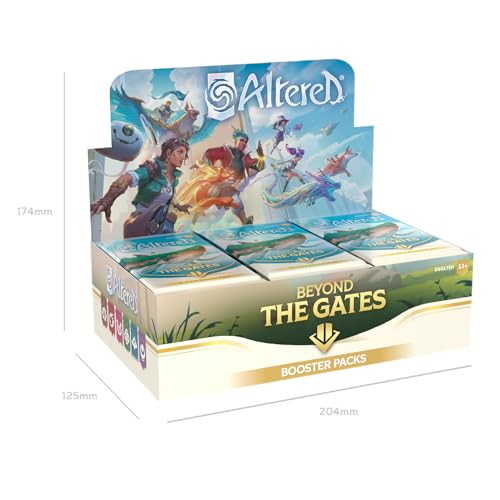 Embark on an unprecedented adventure with the “Altered Beyond the Gates” Booster Display. This innovative trading card game invites players to play as a Hero of one of the game’s six Factions. After the Confluence, a magical storm, merged the imaginary world with ours, your mission is to lead expeditions into altered regions, in order to explore and understand the changes and restore balance to the surrounding areas. Reunite your Hero and your Companion anywhere on the adventure map to win the game! Altered stands out with its unique, non-combat based gameplay, offering a fresh, strategic gaming experience. Fast-paced turns, an innovative mana system, and a Reserve mechanic make for fun and engaging games. This Booster Display is your gateway to a collection of Rare and Unique Altered cards, perfect for drafting with your friends or expanding your personal collection. Each display contains 36 booster packs, with 12 cards per pack, including Hero, Rare, Common, and either Token or Foiler cards, with a Unique card occasionally replacing a Rare for added excitement. One of Altered’s many innovations, these cards bring an element of surprise and personalization to every game. The game supports 2 players, with playtimes ranging from 20-30 minutes, recommended for ages 13 and up. Don’t miss the opportunity to be part of this exciting world. Build your collection, customize your deck, and challenge your friends. Scan your cards and add them to your collection in the digital app to unlock the full Altered experience, including deck building, trading and selling, lore exploration, and participating in events.