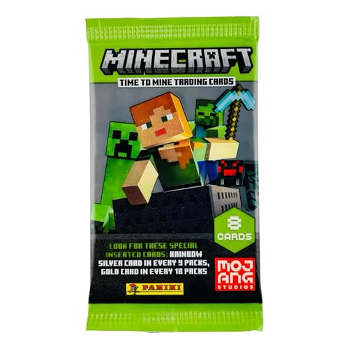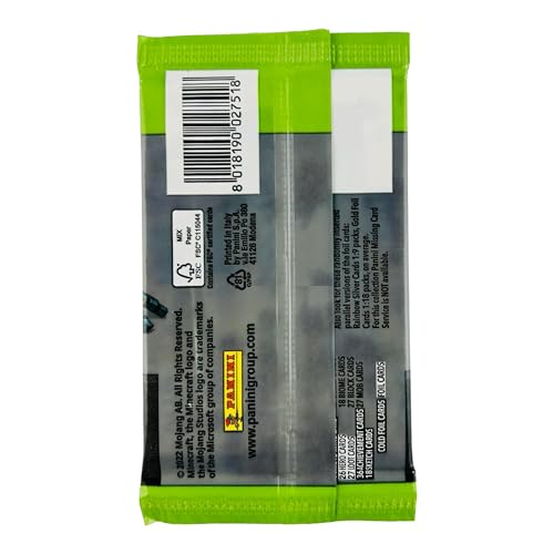 Explore, build, and collect with the Panini Minecraft Mega Box—an officially licensed 2024 Minecraft trading card product. Featuring 60 cards, including foil parallels and rare inserts, this mega box is perfect for fans of Minecraft and card collectors alike. Chase fan-favorite mobs, biomes, weapons, and characters in full-color collectible form. The official Minecraft Trading Card collection features over 200 cards from the influential and iconic game, including characters, mobs and biomes! Find limited-edition parallels — Stone, Iron, Gold, Diamond, Netherite — as well as optichrome versions! Look for ultra-rare Color Blast and Minecraft Milestone cards!