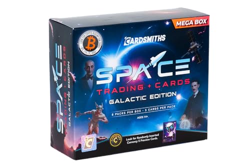 The SPACE: Galactic Edition from Cardsmiths takes collectors on a journey exploring our closest celestial neighbors all the way to the furthest reaches of the known universe and beyond. Along the way, you will encounter space-based technologies, transportation systems, astronomers, elements, physicists, Greek mythology, mathematicians, and possibly even extraterrestrial life forms. During your quest, look for key sightings like Parallel Rainbow and Crystal Sparkle holofoil cards. Explore further in search of serial-numbered Gemstone Refractor™, Constellation Refractor, Solar System Refractor, and Deep Space subset cards. You may even chart new territory and find Currency Series 5 Preview cards in your orbit. There are even more rare discoveries to be made for those willing to venture into uncharted depths. Randomly inserted in packs are specially marked cards redeemable for various denominations of cryptocurrencies like Bitcoin, Ethereum, Litecoin, and Dogecoin. Start your Cardsmiths SPACE: Galactic Edition collection this nanosecond!