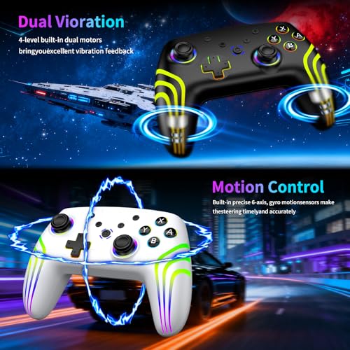 VidPPluing 2 Pack Switch Controllers, RGB Switch 2 Controller for Nintendo Switch/Switch 2/Lite/OLED, Wireless Pro Controller with Motion Sensor/Dual Vibration/Turbo/Wakeup