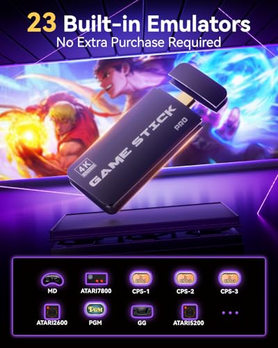 Retro Gaming Console, 20,000+ Retro Game Stick, 4K HD HDMI TV Game Stick, Built-in Classic Video Games 23 Emulators Plug & Play Game Console for TV with 2 Wireless Controllers