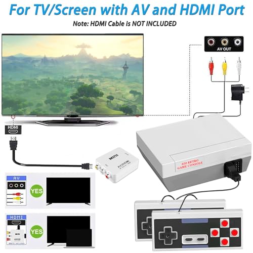 【AV And HDMI Display Output】Plug and play vintage classic 8-bit TV video game console is easy to set up and install. Retro gaming is widely compatible with a wide range of displays Supports HDMI and AV input ports to connect to a TV or monitor.