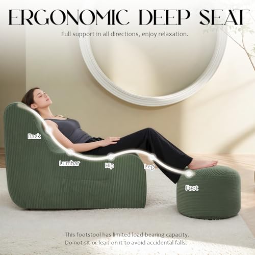 ECOTOUGE Bean Bag Chair, Ergonomic Bean Bag Chair with Ottoman, Comfy Lazy Sofa for Adults, Beanbags with Non-Slip Base, Ideal Lounge Chair for Living Room, Gaming, Dorm Office Reading (Green)