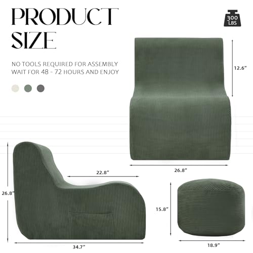 Premium Comfort: Our foam chair is filled with 26D high-density foam in one piece. When you sit on it, there’s no uncomfortable rolling feeling of particles. It feels like being steadily held by a cloud. When you stand up, the foam rebounds quickly without collapsing or deforming