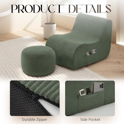 Designed for Longevity: The corduroy fabric of this bean bag chair is fine and soft, not irritating to the skin. Reinforced stitching and anti-slip bottom, designed to withstand daily use without showing wear and tear. Even if you lean on it with bare arms in summer, you won’t feel stuffy or sweat