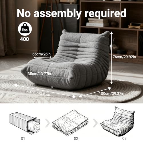 Gaming Bean Bag Chairs for Adults, Fireside Chair for Living Room with Memory Foam Filled, Accent Sofa Lounge Floor Sofa for Reading Dormitory Relax, No Assembly Required Gray