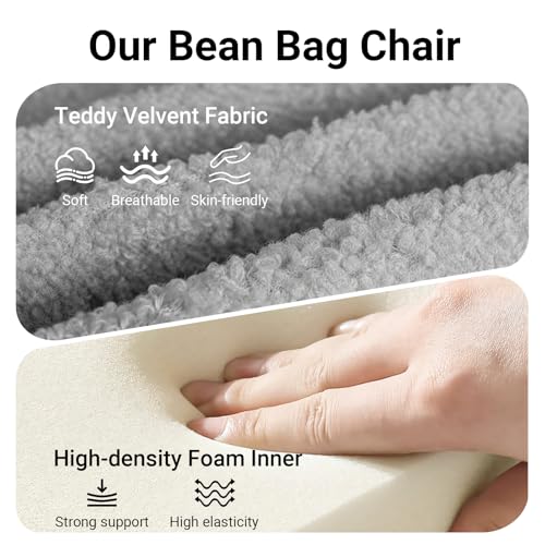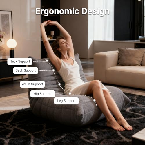 [Premium Memory Foam Filling]: The bean bag chair features high-density, high-resilience foam filling that conforms to your body’s curves, providing exceptional comfort and long-lasting support, retaining its shape over time. Whether you’re napping, reading, or gaming, it’s durable and comfortably supports up to 400 lbs