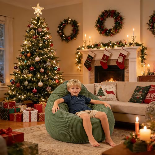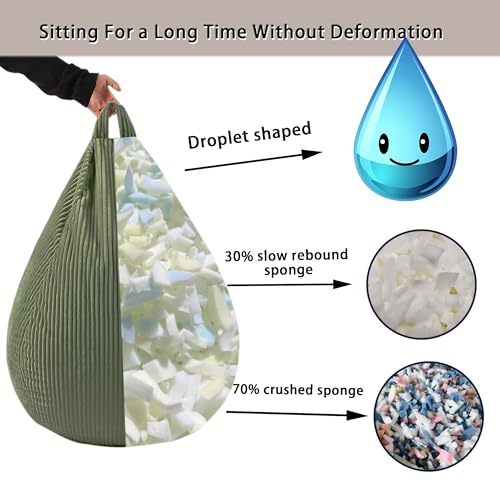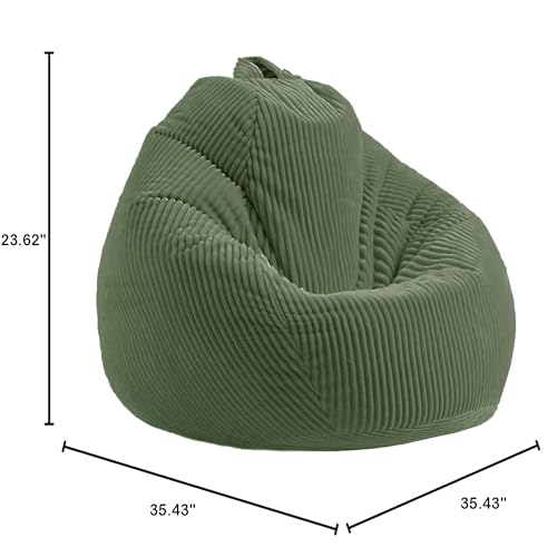 LPMOERA Bean Bag Chairs for Kids/Teen with Memory Foam Filling Bean Bag Sofa with Soft Corduroy Fabric BeanBag Chair for Living Room Bedroom College Dorm Reading Chair Green