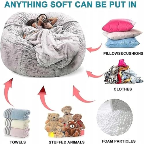 Storage Bean Bag Chair Cover(No Filler) for Organizing Plush Toys Or Textile,Pv Fleece Washable Large Bean Bag Chairs Cover for Adults for Living Room Bedroom Furniture (Light Grey, 5FT)