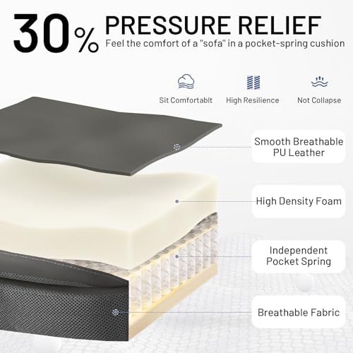 BUILT FOR RELIABILITY – Invest in a chair that endures. Constructed with a sturdy metal base and SGS-certified Class 4 gas cylinder, this executive chair confidently supports up to 300 lbs. The premium PU leather and high-resiliency foam ensure year-long durability and ease of cleaning.