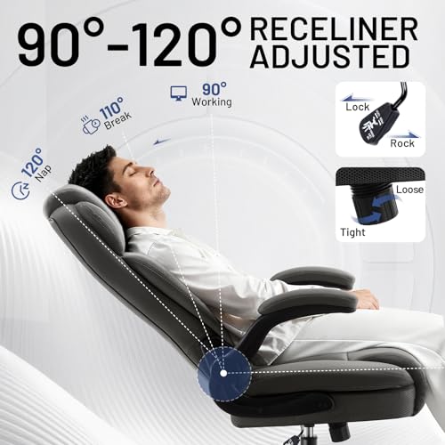 ADJUSTABLE COMFORT FOR ANY TASK – Tailor your seat to your workflow. The padded armrests flip up to save space or provide support as needed. Smoothly recline from 90° to 120° and switch between focused locking mode or relaxing rocking mode.
