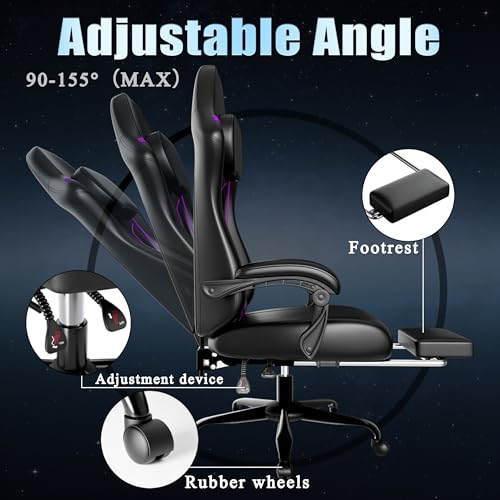 Ergonomic Gaming Chair, Video Game Chair with Pocket Spring Cushion and Footrest, Height Adjustable Computer Chair with Swivel Seat and Headrest (Purple)