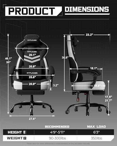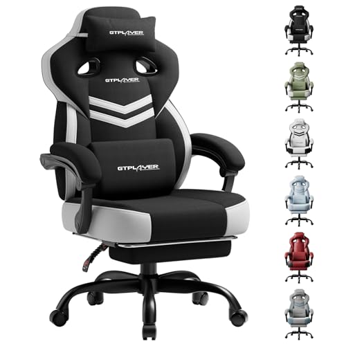 GTPLAYER Gaming Chair, Computer Chair with Footrest and Lumbar Support for Adults, 360°-Swivel Big & Tall Reclining Seat for Office or Gaming (Black&White)