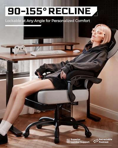 【Linked Armrests & Reclining Backrest】The synchronized armrests move with your recline—from upright focus at 90° to relaxed mode at 155°—keeping your arms and shoulders perfectly supported at every angle