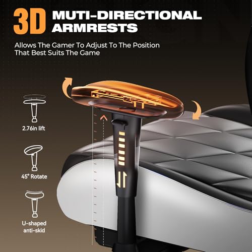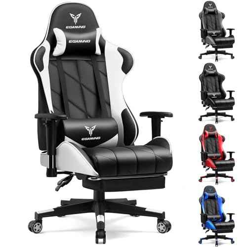 GTRACING Gaming Chair with Footrest, Ergonomic High-Back PU Leather Computer Chair with 3D Adjustable Armrests, Headrest and Lumbar Support, Office Desk Chair with Diamond Stitching for Adults & Teen