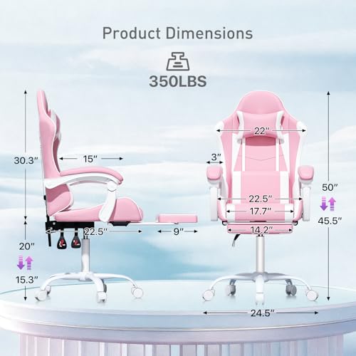 MoNiBloom Gaming Chair with Headrest & Lumbar Support Ergonomic Computer Racing Chair with Footrest, Adjustable Hight Leather Swivel Computer Chair for Adult Teen Office or Gaming