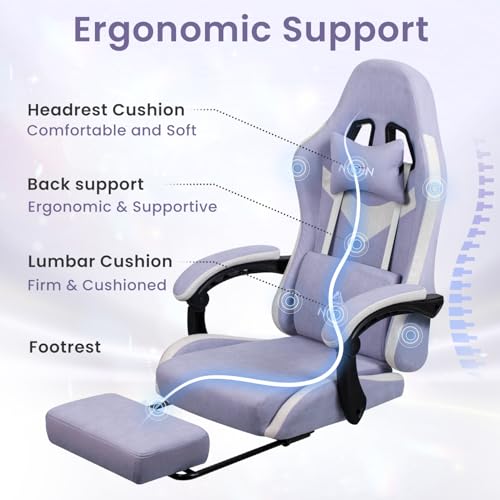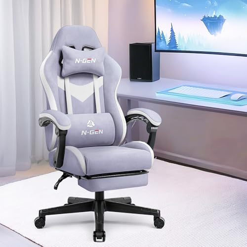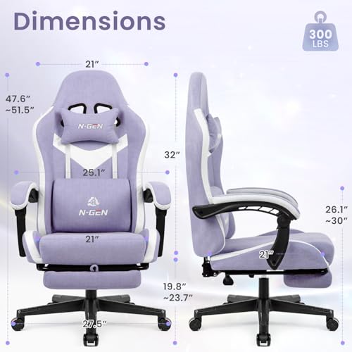 N-GEN GAMING Video Gaming Chair Office Computer Desk Use Ergonomic Reclining Backrest Adjustable Armrests Lumbar Support Footrest High Density Foam Breathable Fabric Heavy Duty Base (Purple)