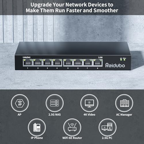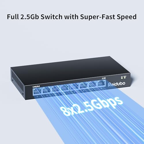 Super-Fast 2.5Gb Speed: Don’t let a lagging network slow you down. Upgrade your office and home network with this 2.5G Ethernet switch, delivering 2.5 Gbps across all 8 ports, 2.5X faster than gigabit switches. With up to 60Gbps switching capacity, it maximizes data transfer for all connected devices.