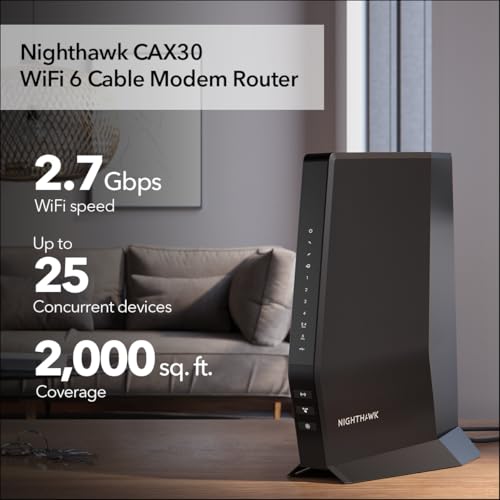 NETGEAR Nighthawk Modem Router Combo (CAX30) DOCSIS 3.1 Cable Modem and WiFi 6 Router – AX2700 2.7 Gbps – Compatible with Xfinity, Spectrum, Cox, and More – Gigabit Wireless Internet