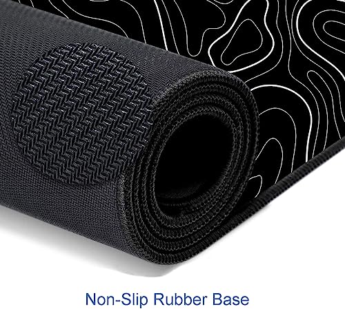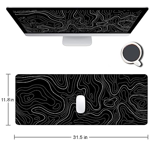 Large Mouse Pad, Extended XL Gaming Mousepad, Non-Slip Rubber Base Keyboard Mouse Mat Desk Pad for Work, Game, Office, Home, 31.5 x 11.8 in, Black Minimalist Topographic Map PL230707021