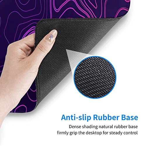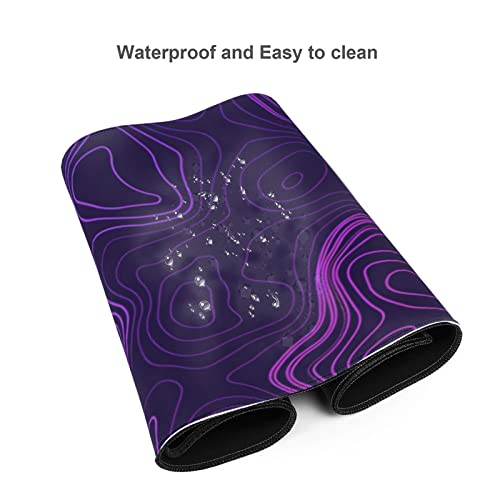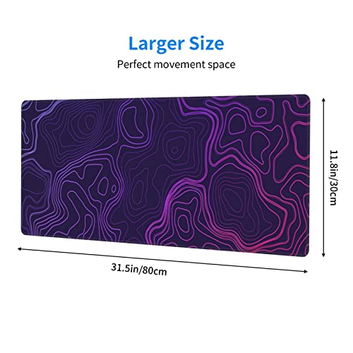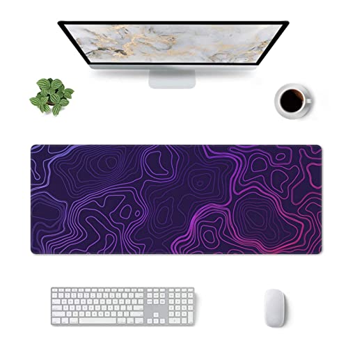 Purple Topographic Map Mouse Pad Large XL Geographic Contour Gaming Mousepad Extended Long Keyboard Desk Mat with Non-Slip Rubber Base for Office Laptop Computer 31.5” X 12”