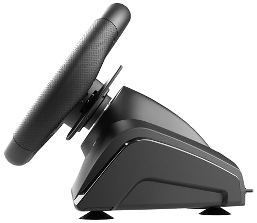 FINISH AND STABILITY: Ergonomic structure made of sturdy ABS with micro-perforated faux leather grip coating for excellent handling and improved comfort during long gaming sessions. For added stability, the steering wheel features a suction cup or screw clamp mounting system for a perfect fit on most surfaces