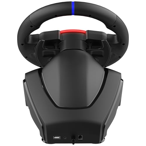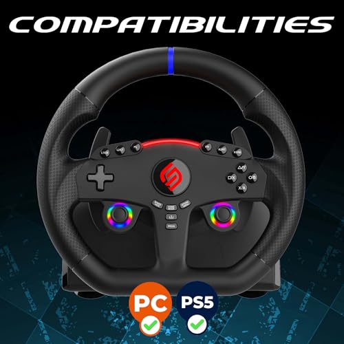 PS5 & PC GAMING STEERING WHEEL: PS5 and PC compatible racing wheel. PS5 connection via USB dongle. If the PS5 does not recognize the wheel when first used, update the wheel via PC. Once detected, no configuration is necessary. Compatible with most racing games: GTA, Gran Turismo, Forza, Dirt, WRC, Farming Simulator, etc. Not compatible with PS4, Nintendo Switch, and Xbox