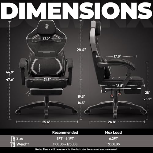 Dowinx Fabric Gaming Chair with Footrest, Big and Tall Ergonomic Gamer Chair with Lumbar Support, Wide Back Computer Chair for Heavy People, Black