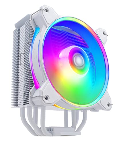 Cooler Master Hyper 212 Halo CPU Air Cooler – Pure White Aluminium Finish, 4 Continuous Direct Contact Heat Pipes with Fins, MF120 Halo2 ARGB Fan, ARGB Auto Detect, LGA1700 & AM5 Brackets – White