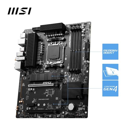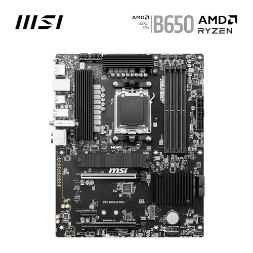 MSI PRO B650-S WiFi V1 Motherboard, ATX – Supports AMD Ryzen 9000/8000 / 7000 Series Processors, AM5 – DDR5 Memory Boost 6000+MHz/OC, 2 x PCIe 4.0 x16, 2 x M.2 Gen4, Wi-Fi 6E