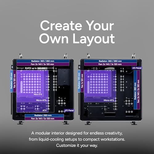 Motherboard Compatibility – Supports ITX, ATX, and large E-ATX motherboards (up to 11″ wide), all within a compact ATX form factor for maximum build flexibility.