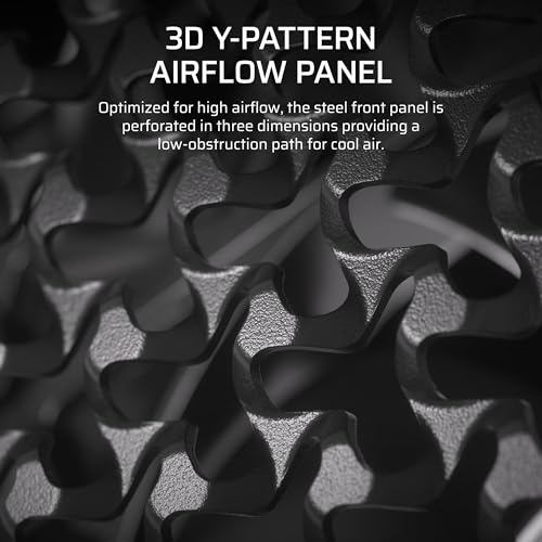 3D Y-Pattern Airflow Panel – Optimized for high airflow and minimal restriction, the steel front panel is perforated in three dimensions with a Y-pattern that provides a low-obstruction path for cool air.