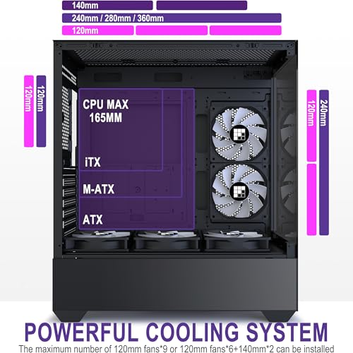 Super Cooling System, supports 360mm radiators on top. Air cooling supports up to 170cm in height.