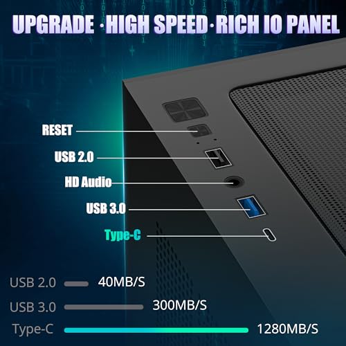 Upgrade Your High-Speed IO Panel – The LINEDEPOT PC case is loaded with external ports for great value. 1 TYPE-C high speed interfaces, 1 USB 3.0 and 1 USB 2.0 ports, making it effortless to connect new devices and enjoy faster transfer speeds, reducing waiting time. With a better power supply, a Reset button and an AUDIO jack, it meets all your needs for daily work and gaming fun.