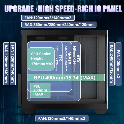 Want amazing cooling and cool lighting effects? LINEDEPOT’s Gaming Pc Case With Fans has you covered with 7 pre-installed adjustable speed ARGB fans, which are a dream for lighting enthusiasts. You can manage everything via your motherboard software, customizing various colorful and captivating light modes. The fans feature anti-vortex blades for proper airflow inside the case. Additionally, the software allows you to fully control the fan speeds and keeps the side fans steadily drawing in air, resulting in better cooling than regular cases and prolonging the life of your hardware.