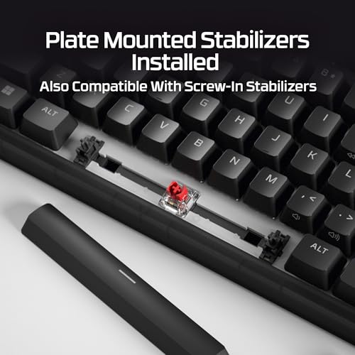 Smooth HyperX Linear Red Switches: HyperX Linear Red Switches use half-wall POM stems for better stability and typing comfort. The switches are also factory-lubed for smooth actuation, provide a subtle typing sound, and rated for up to 80 million keypresses.