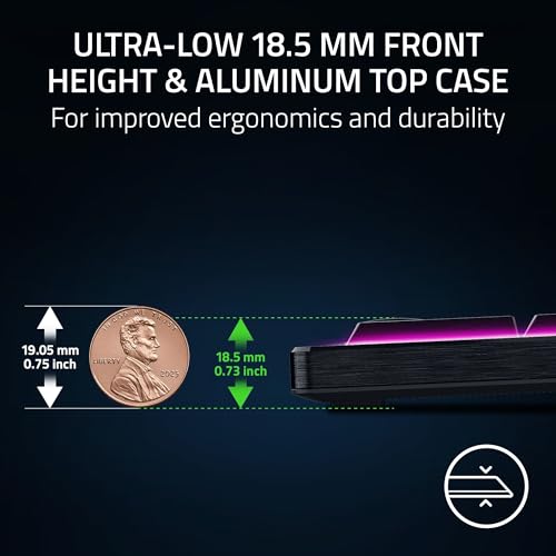 ULTRA LOW 18.5mm FRONT HEIGHT & ALUMINUM TOP CASE — Enjoy strain-free typing and gaming for hours with an ultra-low keyboard angled for neutral wrist positioning, complete with a solid 5052 aluminum alloy top case for a premium feel