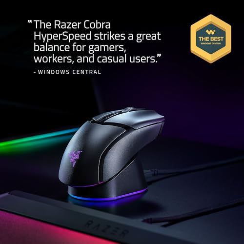 Unleash peak performance with the Razer Cobra HyperSpeed—a lightweight, symmetrical wireless gaming mouse built for total immersion. Weighing just 62g, it offers all-day comfort across grip styles, while 9 customizable controls let you execute commands and macros effortlessly. Experience vibrant 4-zone Chroma RGB lighting with underglow, synced with hundreds of games. Equipped with the Razer Focus X 26K Optical Sensor and our first-ever Optical Scroll Wheel, it delivers pixel-precise accuracy and tactile feedback for high-stakes gameplay. Gen-4 Optical Mouse Switches offer crisp, responsive clicks with a 100M-click lifespan. With up to 110 hours of battery life on HyperSpeed or 170 hours on Bluetooth, and multiple charging options including USB-C and wireless (dock and puck sold separately), the Cobra HyperSpeed is as versatile as it is powerful. Store up to five onboard memory profiles and game anywhere with confidence. Light up your game and play without limits.